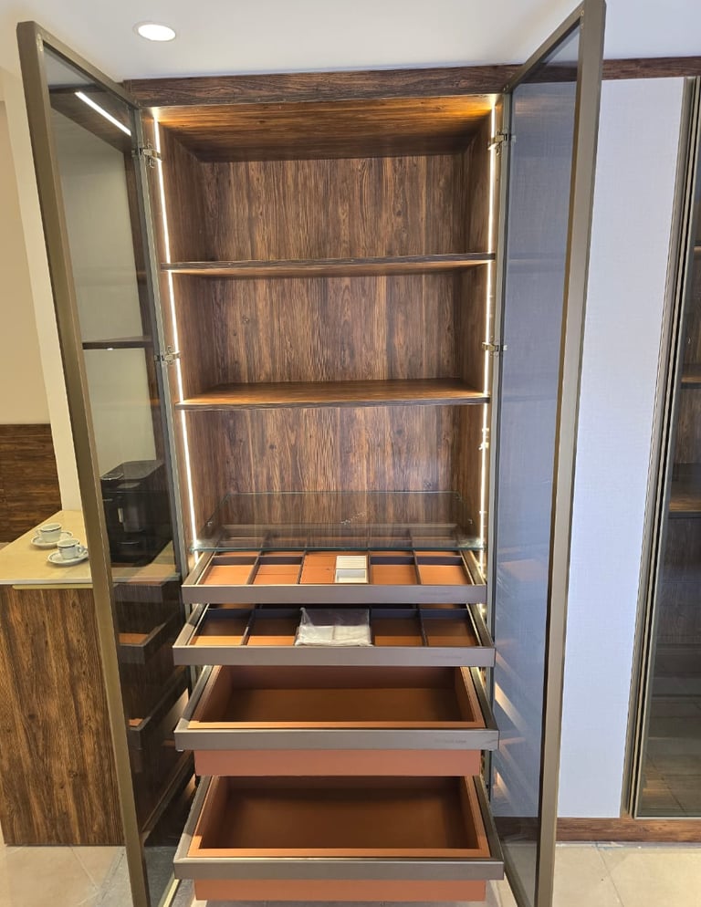 نفخر بخبرتنا الواسعة في تصميم وتصنيع أبواب المطابخ، والخزائن، وحلول التخزين وفق أعلى معايير الجودة والدقة. يُنفَّذ كل منتج بعناية فائقة ليتناسب مع مساحتك وذوقك الشخصي، مع التركيز على المتانة، والجمال، والوظيفة العملية. نستخدم أجود الخامات لضمان أداء يدوم طويلًا ومظهر أنيق يحافظ على جودته لسنوات. سواء كنت تبحث عن مطبخ عصري، أو خزائن عملية، أو أبواب تضيف لمسة جمالية راقية إلى منزلك، نحن هنا لتحويل رؤيتك إلى واقع بكل احترافية وابتكار.